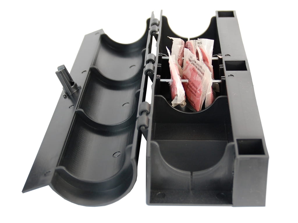 Karmnik tunelowy nSens jest wykonany z wysokiej jakości plastiku odpornego na uszkodzenia mechaniczne. Posiada uniwersalny rozmiar i podłużny kształt dzięki czemu sprawdzi się zarówno przy zwalczaniu myszy jak i szczurów. Karmnik typu przelotowego zapewnia najwyższą skuteczność odławiania gryzoni. Karmnik jest trzykomorowy co zwiększa bezpieczeństwo i dyskrecje użytkowania. W drugiej komorze znajdują się specjalne druty do nadziewania trutki w formie pasty lub kostki.
